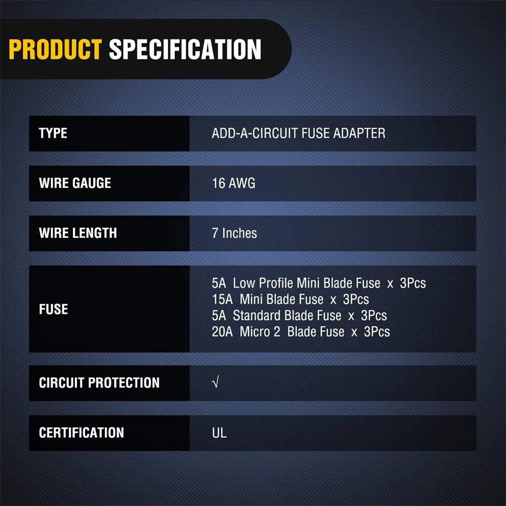 Our fuse tap kit is designed to meet the demands of various automotive electronics. It supports 12V systems, making it ideal for cars, trucks, and even motorcycles. With different sizes available, including standard, mini, and micro2, you can easily find a fit for your specific fuse box. This adaptability ensures that you can add new circuits without compromising your vehicle’s integrity or safety, so you can enhance your vehicle’s capabilities with confidence.